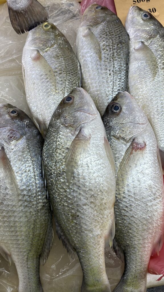 淡白でやや泥臭さが出ることもあるが、揚げると美味しい。たまに黒いティラピアを見るが、マレーシアではホワイトティラピアが主流。